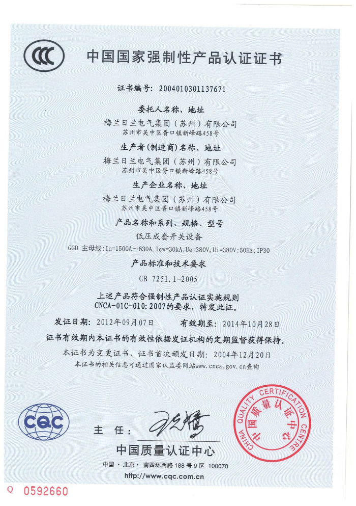 (成套)GGD主母線資質證書