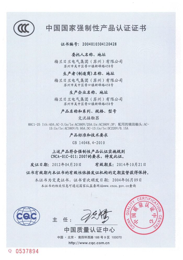 MRC1-25交流資質證書