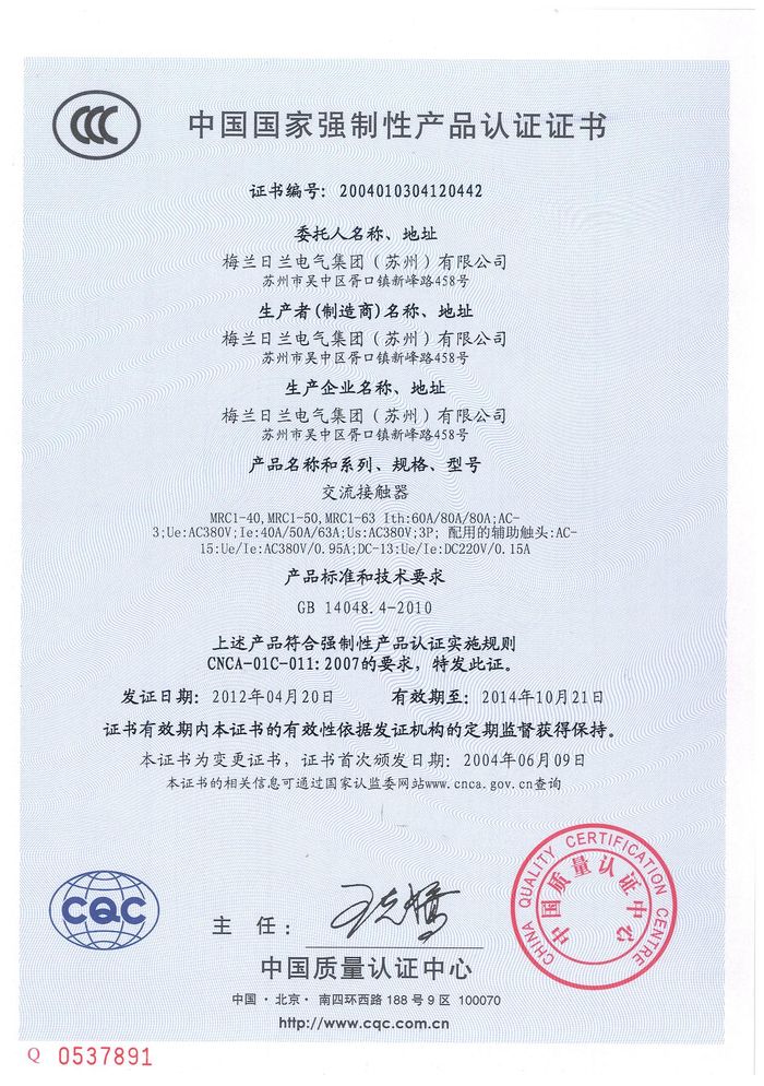 MRC1-40交流資質證書