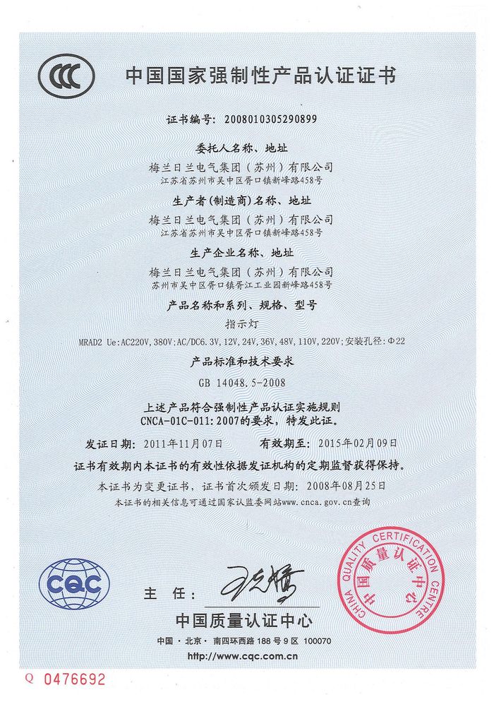 MRAD2指示燈資質證書