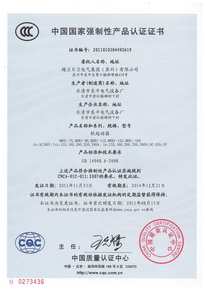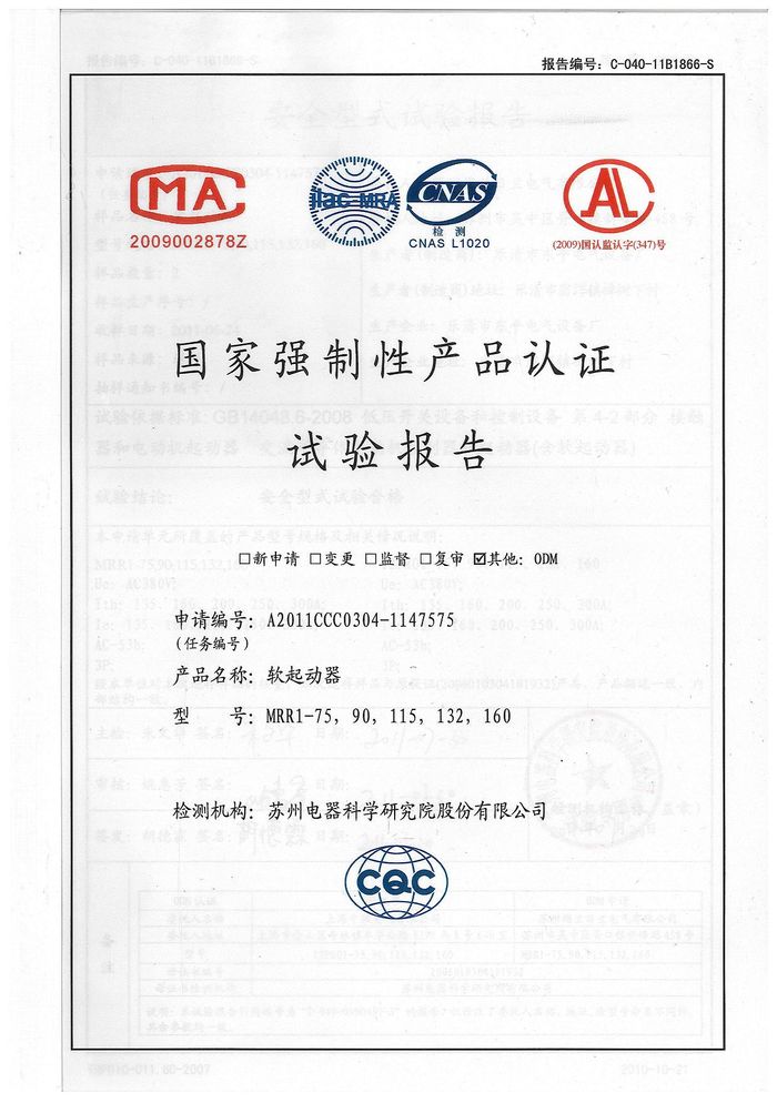 MRR1-75軟啟動資質(zhì)證書