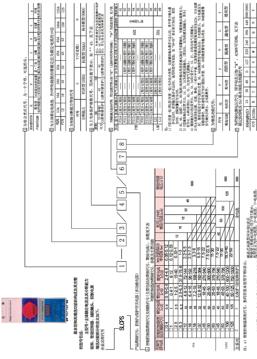 例二:訂SL購(gòu)CPS-N-45C/33E40/06ML表示出SLCPS可逆型產(chǎn)品、分?jǐn)嗄芰?5KA、主體脫扣器額定電流45A、三級(jí)帶三極保護(hù)、液晶式智能控制器額定電流40A、3常開2常閉+1短路1故障輔助觸頭、線圈控制電源電壓220V,帶漏電功能。