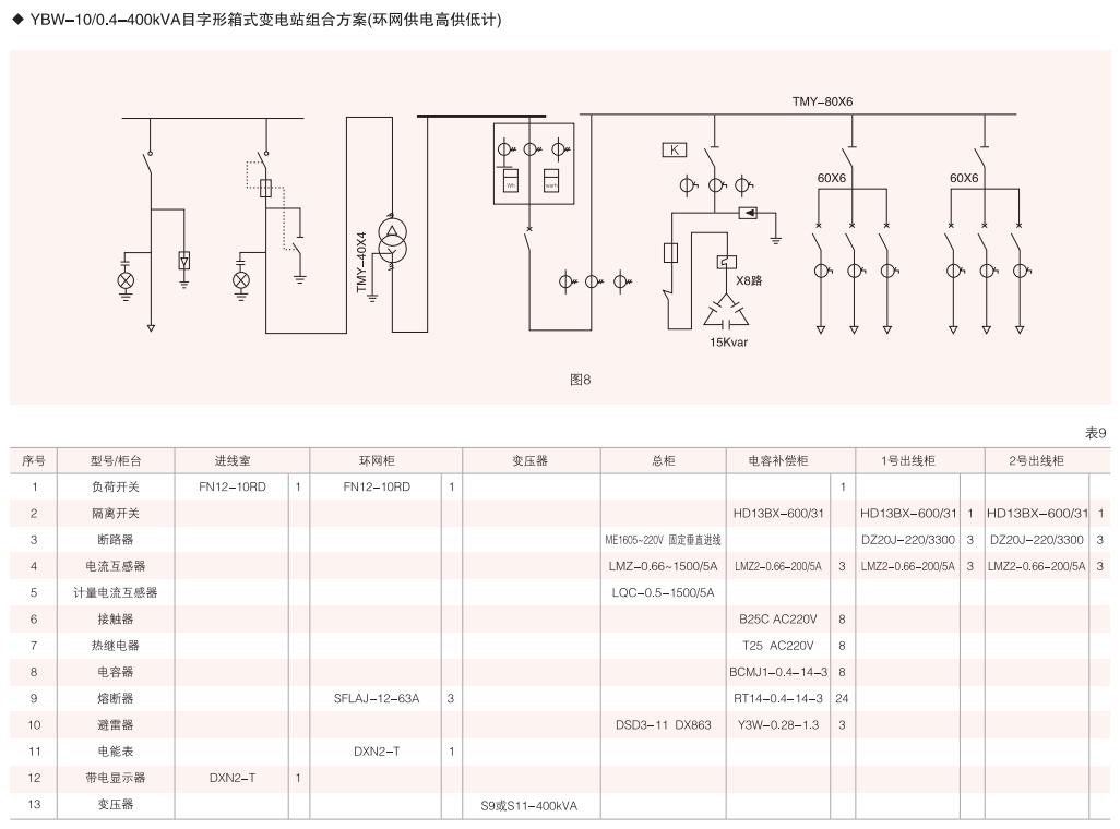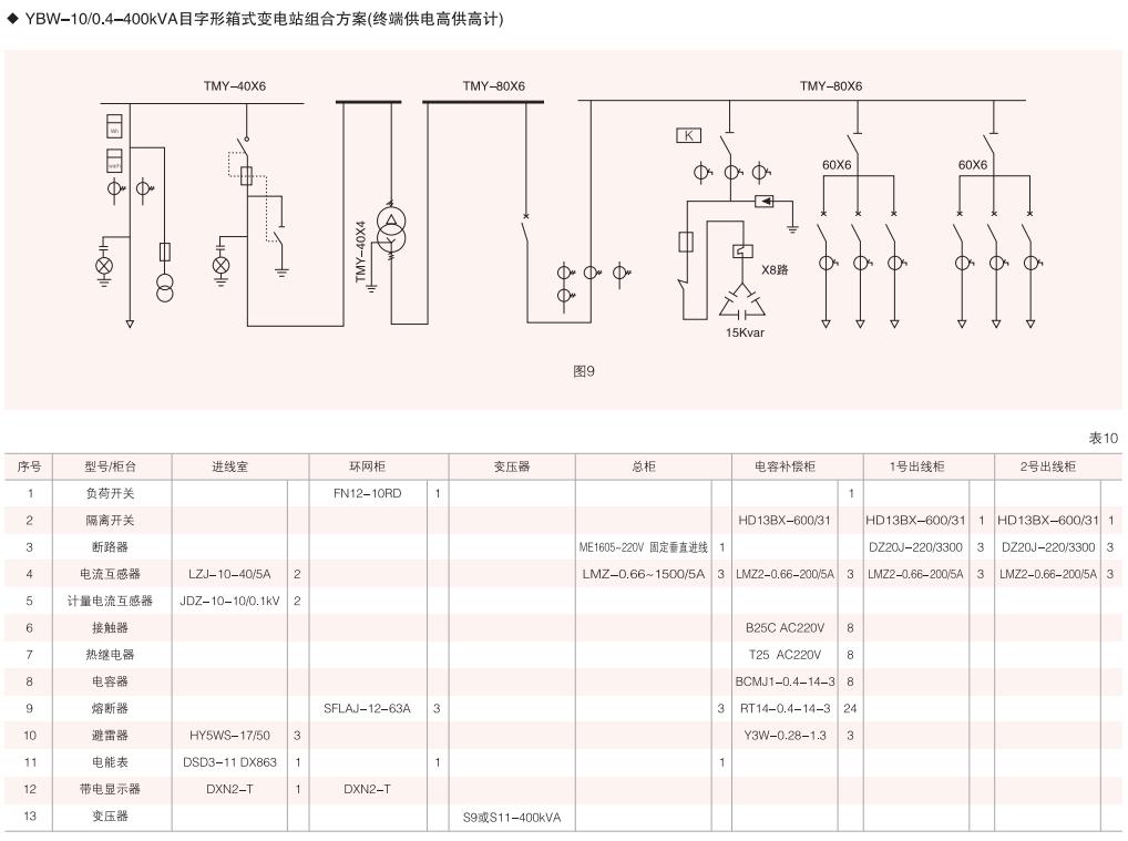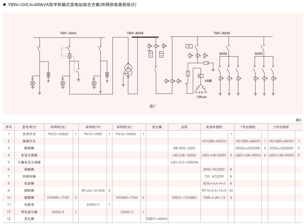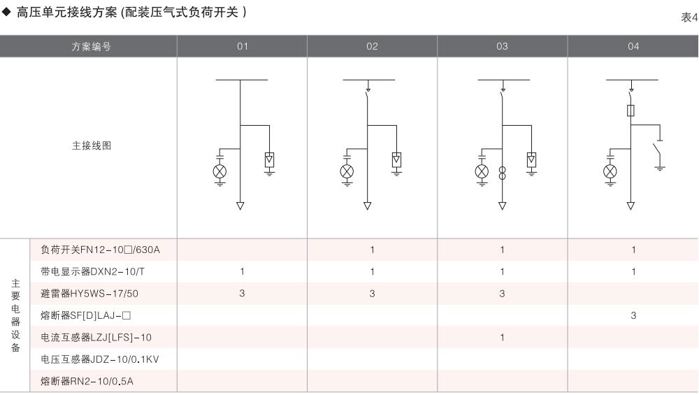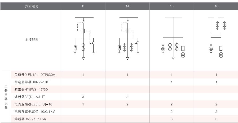 表6~列舉了一些典型組合接線方案,供用戶和設計單位參考。(以配裝壓氣式負荷開關為例)