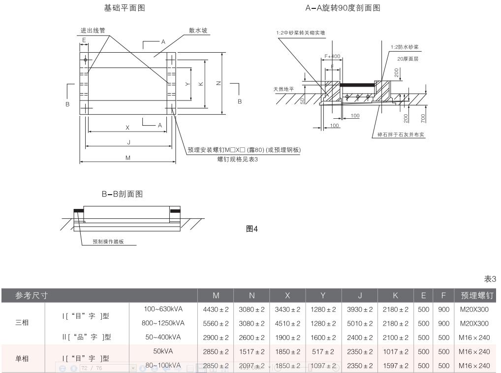 ◆用戶應按提供的基礎圖做好箱變攀礎,將箱變安置在基礎上后(箱變底部有四個安裝孔),調整平面。壓緊地腳螺栓。連接接地體、安裝出線電纜(架空出線也可),按要求全面檢查和必要電氣試驗后,即可通電使用。