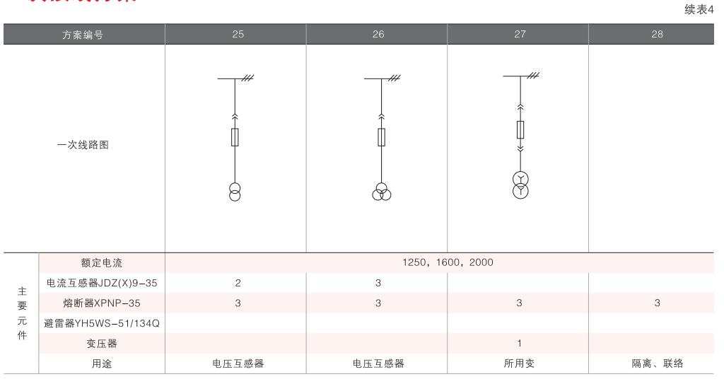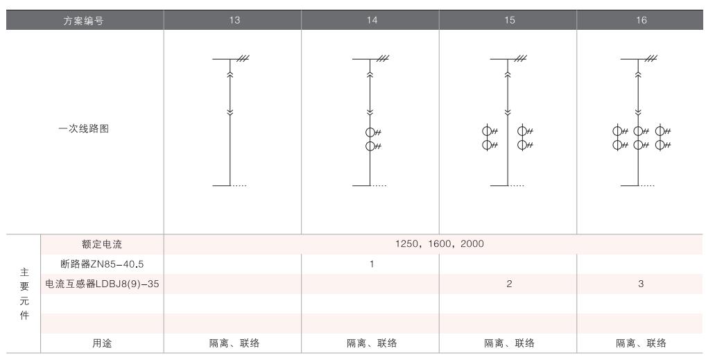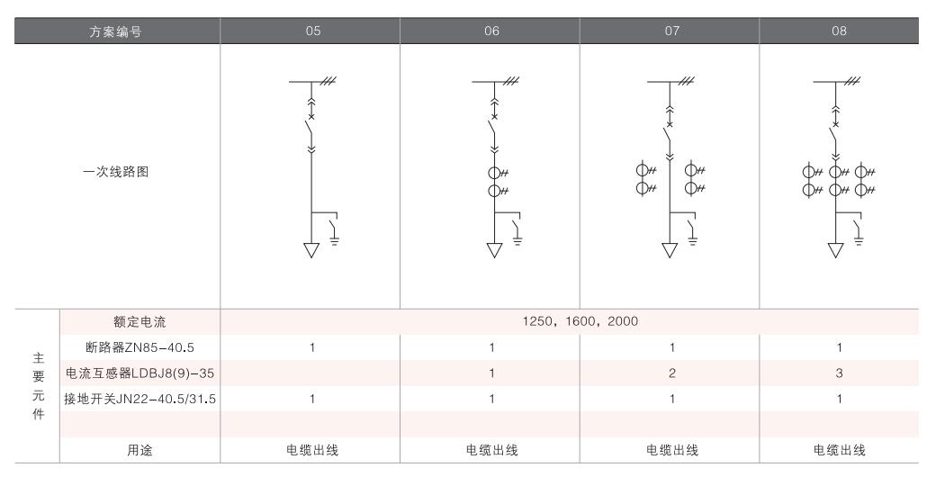 開(kāi)關(guān)柜的一次接線方案有27個(gè)常用典型方案,能滿足用戶電纜進(jìn)出線、架空進(jìn)出線,聯(lián)絡(luò)級(jí)測(cè)量、保護(hù)等的需要,若有不同與現(xiàn)有方案的其他方案的需要,請(qǐng)與廠方協(xié)商。