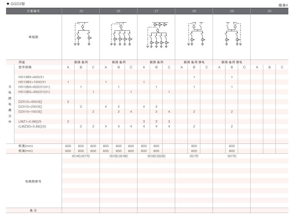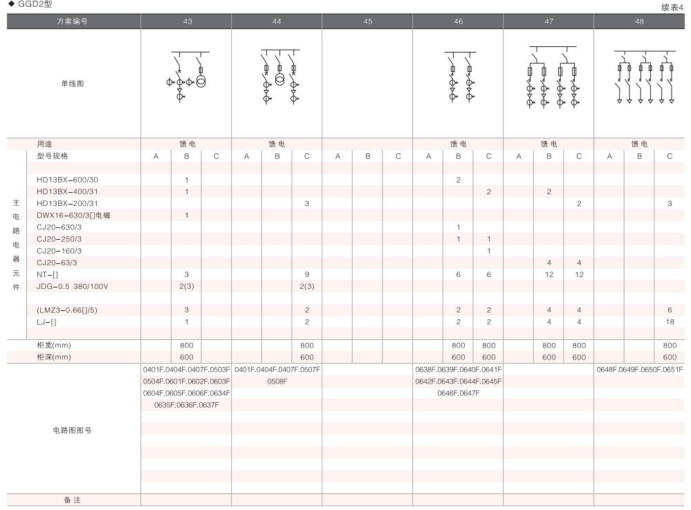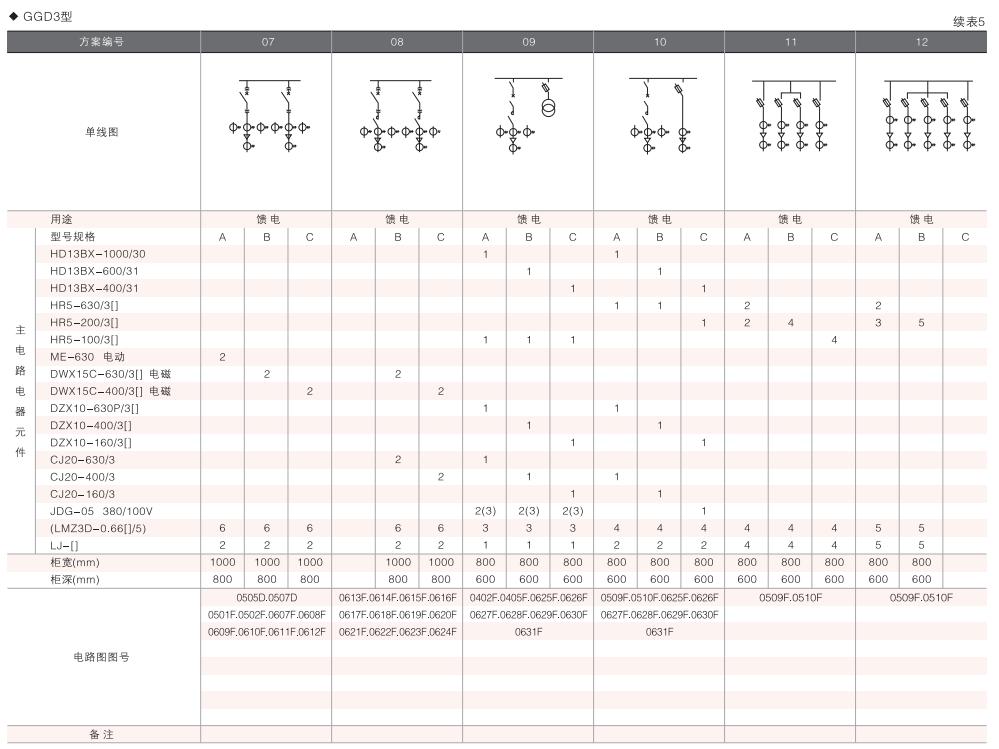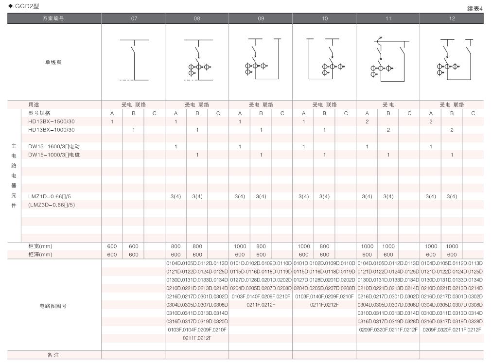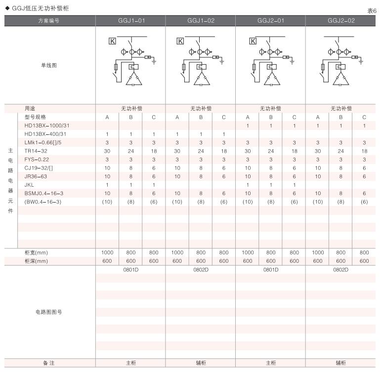 此外,為適應無功補償的需要設計了GGD電容補償柜,其主電路方案4個,共12個規格。