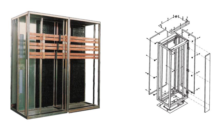 柜體基本結構為本公司適用組合式結構.以C型型材(基本模數E=25mm)為主要結構件,采用鎖緊自攻螺釘和8.8級高強度螺栓緊固而成,因而柜體精度高、剛性好、接地連續性好。