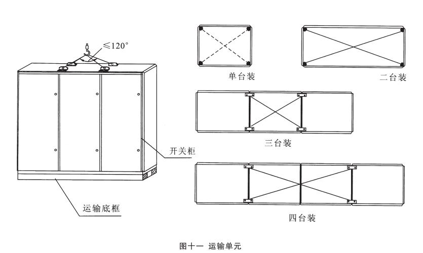 運輸單元:產品分四種規格的運輸單元:單臺裝、二臺裝、三臺裝和四臺裝。但總長度不得超過3m,見圖十一。