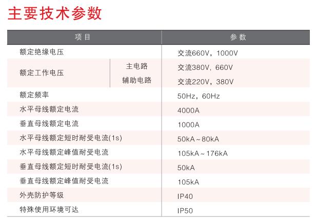 產品設計充分考慮了廣大電力用戶及設計部門的要求,能滿足不斷發展的電力行業對增容、計算機接口、動力集中控制、方便安裝維修、縮短事故處理時間等需要,安全、經濟、合理、可靠。產品具有接通能力強、分段能力高、動熱穩定好、電氣方案員活、組合方便、系列性與實用性強、結構新穎、防護等級高特點.是低壓抽出式開關成套設備的高檔產品。